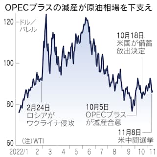 米国の原油先物価格は1バレル80ドル台半ばで底堅く推移しています。石油輸出国機構(OPEC)とロシアなどでつくる「OPECプラス」の大幅な減産が需給を引き締めているためです。米国の意向に反して決行した減産は、ロシアや中国も重視するサウジの外交姿勢の変化を象徴しています。国際関係や世界のインフレなど広範囲に影響を及ぼしそうです。