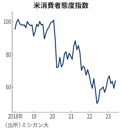 同大の調査分析担当のジョアン・シュー氏は「インフレ圧力が緩和傾向にあり、米連邦政府の債務上限問題も決着したことで、消費者に楽観的な見方が広がった」と指摘した。